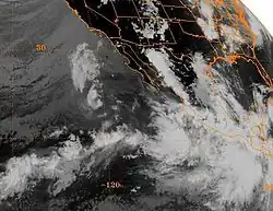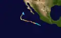 Una ola tropical surgió en la costa de África tras el Huracán Luis el 31 de agosto. El empuje de Luis impidió que la ola se desarrollada y continuó hasta el oeste hasta llegar al océano Pacífico oriental el 12 de septiembre. La convección creció al moverse hacia el golfo de Tehuantepec y la nubosidad se organizó suficientemente como para quedar recogida en la clasificación Dvorak el 15 de septiembre. Basándose en el desarrollo de la circulación baja, se predijo que el sistema formaría la Depresión Tropical Once-E el 16 de septiembre mientras se encontraba situada a 465 km al sur de Manzanillo, Colima.[52] Debido a que la depresión tropical se movía sobre un área de aguas cálidas el Centro Nacional de Huracanes predijo que la depresión se intensificaría ligeramente hasta tener vientos de 110 km/h en las próximas 72 horas.[53]