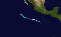 El 20 de octubre la convección asociada con una ola tropical se fue organizando y se creó la depresión tropical Dieciséis-E, al sur de Acapulco. Poco después se convirtió en la tormenta tropical Patricia alcanzando fuerza de huracán el 21 de octubre mientras se iba dirigiendo al oeste. 12 horas después, la fuerza del viento aumentó hasta los 130 km/h y el Instituto Nacional de Huracanes predijo un reforzamiento.[30] Sin embargo, el 22 de octubre, Patricia comenzó a debilitarse dejando de ser huracán. La tormenta se debilitó hasta convertirse en una depresión el 25 de octubre y se disipó al día siguiente, dando por terminada la temporada. El huracán Patricia no tuvo efectos en tierra.[31]