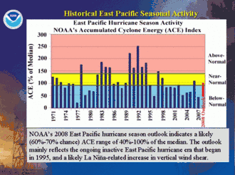Los huracanes en el Pacífico oriental tienden a moverse hacia el oeste hacia el mar, sin dañar tierra. Sin embargo, los huracanes pueden recurrir hacia el norte o el noreste, llegando a Centroamérica o México temprano y tarde en la temporada de huracanes.