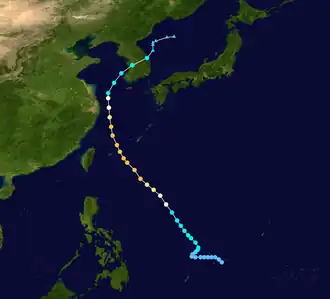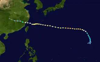 - ↑ Martin Fackler (9 de septiembre de 2002). «Typhoon Batters Southeastern China». Associated Press – vía Lexis Nexis.