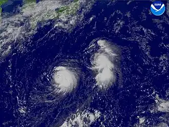 Dentro del océano Pacífico noroccidental, hay dos agencias quienes de forma separada asignan nombres a los ciclones tropicales de los cuales resultan en un ciclón con dos nombres. La Agencia Meteorológica de Japón nombra un ciclón tropical en el que se basarían en la velocidad de vientos sostenidos en 10 minutos de al menos 65 km/h, en cualquier área de la cuenca. Mientras que el Servicio de Administración Atmosférica, Geofísica y Astronómica de Filipinas (PAGASA) asigna nombres a los ciclones tropicales los cuales se mueven dentro o forma de una depresión tropical en el área de responsabilidad localizados entre 135° E y 115° E y también entre 5°-25° N, sí el ciclón haya tenido un nombre asignado por la Agencia Meteorológica de Japón. Las depresiones tropicales, que son monitoreadas por el Centro Conjunto de Advertencia de Tifones de Estados Unidos, son numerados agregándoles el sufijo "W".
