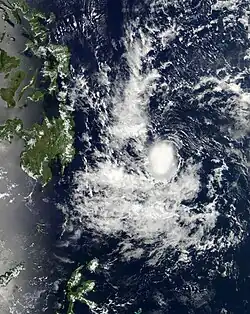 El 4 de enero un área de convección se había formado al suroeste de Palaos, nombrado por la JTWC cómo 94W. Este sistema entró rápidamente al área de responsabilidad filipina, y el 5 de enero la JMA categorizó cómo una depresión tropical.[10] Sin embargo esta institución lo degradó a un sistema de baja presión debido a una cizalladura de viento vertical del sureste. El sistema se reorganizó y la JMA lo categorizó como una depresión tropical el 8 de enero. Luego al tocar tierra en Filipinas se empezó a debilitar degradándose a una baja presión según la JMA, después por segunda vez se reorganizó a depresión tropical.[11][12]