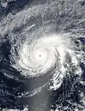 El tifón Dolphin (nombre aportado por la Región Administrativa Especial de Hong Kong que hace referencia, en inglés, al delfín blanco chino)[7]​ se formó a partir de un área de perturbación convectiva que empezó a monitorizarse por el Centro Conjunto de Advertencia de Tifones a finales del 4 de mayo.[145]​ Mientras se desplazaba generalmente al noreste, la perturbación ganó intensidad y fue catalogado como una depresión tropical por la JMA el 6 de mayo a las 12:00 UTC y por la JTWC a las 21:00 UTC que lo denominó como: Siete-W.[146][147][148]​ Fue declarado como tormenta tropical el 9 de mayo cuando el sistema ganó convección profunda alrededor de su centro de circulación, aunque limitada al noroeste por la presencia de una cizalladura de viento.[149][150]​ Bajo la influencia de una cresta subtropical el sistema tomó un giro al norte-noroeste el cual después ganó intensidad a pesar de la presencia moderada de la cizalladura.[151][152]​ A inicios del 12 de mayo fue promovido a tormenta tropical severa,[153]​ mientras que la JTWC lo promovió a tifón.[154]​ A las 06:00 UTC del 23 de mayo fue promovido a tifón por la JMA.[155]​ A partir de ese momento el tifón inició una tendencia intensificatoria el cual provocó la formación de un ojo de 10 kilómetros de diámetro y de una nubosidad central densa alrededor.[156][157]​ Esto fue inhibida por la entrada de aire seco al oeste y la cizalladura moderada, aunque cuando estos factores disminuyeron el proceso continuó.[158][159]​ Con una estructura mejorada el sistema alcanzó su pico de intensidad, como el tercer supertifón de categoría cinco de la temporada, con vientos máximos sostenidos en un minuto de 260 km/h, en 10 minutos de 185 km/h y una presión mínima de 925 hPa.[160][161][162]​ La intensidad del sistema empezó a decaer en los siguientes cuatro días cuando encontró ambiente infavorable para su existencia, aunque estuvo siendo tratado paliativamente por una ventilación proveída por un frente de ráfaga polar.[163][164]​ Finalmente, mientras se encontraba al noroeste de Iwo Jima el sistema se convirtió en ciclón extratropical por lo que la JTWC emitió su aviso final el 19 de mayo, aunque la JMA lo dejó de monitorizar hasta el día siguiente.[165][166]