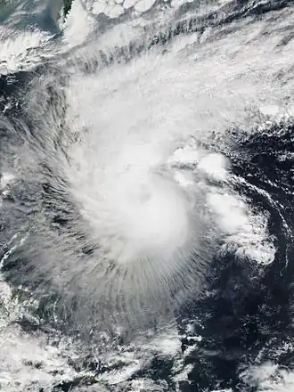 A su paso por el estado micronesio de Chuuk, el 27 de marzo, causó daños extensos. Los vientos de 114 km/h, medidos en el radar de la oficina local del National Weather Service, derribaron numerosos árboles, postes de tendido eléctrico y arrancaron tejados de sus casas. La tormenta destruyó 830 casas, 67 negocios y 6.790 personas damnificadas. El servicio de energía eléctrica y las telecomunicaciones fueron interrumpidas y derribadas, el agua potable fue contaminado por lo que se declaró no apta para el consumo. El 80% de los cultivos fueron arrasados y cinco buques se hundieron. Reportes difieren en el número de muertes, puesto que indican el fallecimiento de cuatro a nueve personas.[102][103]​ En el estado de Yap, el sistema provocó daños extensivos en el atolón Ulithi y la isla Fais. En esta, toda estructura no hecha de concreto y los cultivos fueron arrasados por las marejadas ciclónicas.[103]​ Finalmente, en las Filpinas, solo se reportaron daños leves y cuatro heridos por negligencia al tomarse selfis en la costa, que estaba siendo impactada por las marejadas ciclónicas. Solamente un vuelo fue postergado por la tormenta.[104]