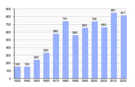Población de los censos y conteos del Instituto Nacional de Estadística y Geografía (INEGI).[9] |