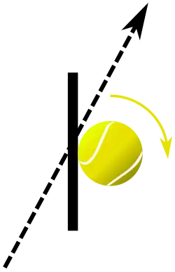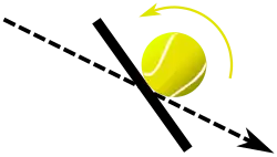 El motivo por el cual logramos imprimir una velocidad angular es la fricción que existe (durante un período muy pequeño) entre la pelota y las cuerdas de la raqueta, estas últimas colisionan casi tangencialmente respecto de la pelota. Esto último es lo que produce un momento de la fuerza sobre la pelota, la cual pasa a tener energía cinética de traslación más energía cinética de rotación. Dicha velocidad angular supone una fricción aerodinámica, de modo que la pelota va empujando (por su parte posterior) constantemente el aire que se le presenta como obstáculo arriba (la fluidodinámica de Bernouilli demuestra este suceso), por la tercera ley de Newton (acción-reacción), la pelota recibe la misma respuesta por parte del viento pero de sentido contrario. Por esto mismo, la pelota adoptará una trayectoria parabólica mucho más pronunciada que en el caso de una colisión plana con las cuerdas.