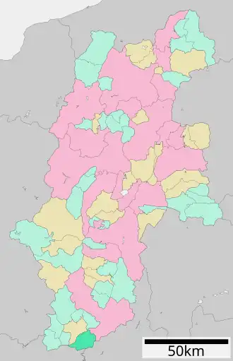 - ↑ «長野県» [Prefectura de Nagano] (PDF). Autoridad de Información Geoespacial de Japón (en japonés). Archivado desde el original el 26 de diciembre de 2019. Consultado el 29 de noviembre de 2019.