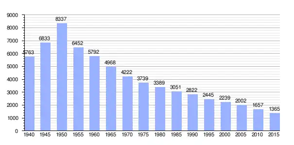 | Gráfica de evolución demográfica de Tenryū entre 1940 y 2015 |