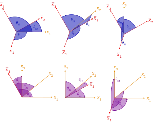 donde θij y θji son los ángulos entre los ejes xi y xj. En general, θij no es igual a θji, porque por ejemplo θ12 y θ21 son dos ángulos diferentes.