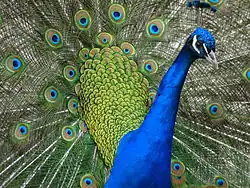 En 1975, Amotz Zahavi propuso un modelo verbal de cómo los costos de señalización podrían limitar las trampas y estabilizar una correlación "honesta" entre las señales observadas y las cualidades no observables, basado en una analogía con los sistemas de handicap deportivo.[16][17] Llamó a esta idea principio del handicap. El propósito de un sistema de handicap deportivo es reducir las disparidades en el rendimiento de los participantes, haciendo al certamen más competitivo. En una carrera de handicap de caballos, los caballos intrínsecamente más rápidos llevan más sobrepeso bajo sus sillas de montar. Del mismo modo, en el golf amateur, los mejores golfistas tienen menos golpes restados a sus puntajes brutos. Esto crea correlaciones entre el rendimiento con y sin handicap, y cuando el sistema funciona correctamente, entre el handicap y el rendimiento del competidor con handicap. Si uno no supiera nada acerca de dos caballos de carreras o dos golfistas aficionados más que sus handicaps, uno podría inferir quién tiene más probabilidades de ganar: el caballo con el handicap de sobrepeso más grande y el golfista con el handicap de golpes más pequeño. Por analogía, si la 'cola' del pavo real (grandes plumas encubiertas de la cola) actúa como un sistema de handicap, y una hembra no supiera nada acerca de dos pavos reales más que los tamaños de sus colas, podría "inferir" que el pavo real con la cola más grande tiene mayor valor intrínseco no observable. Los costos de exhibición pueden incluir costos sociales extrínsecos en forma de pruebas y castigos por sus rivales, así como costos intrínsecos de producción.[18] Otro ejemplo mencionado en libros de texto es el extinto alce irlandés, Megaloceros giganteus. Las enormes astas del alce irlandés macho quizás podrían haber evolucionado como una muestra de la capacidad del individuo para superar el handicap, aunque los biólogos señalan que si el handicap es hereditario, sus genes no debería ser seleccionados sexualmente.[19]