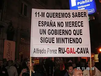 - ↑ «El PP alimentó la teoría de la conspiración del 11M con cientos de preguntas parlamentarias (9 de marzo de 2014)».