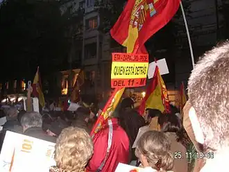 - ↑ «"El PP, más de tres años negando la evidencia. La derecha convirtió la teoría de la conspiración en uno de los ejes de su discurso político" (31 octubre 2007)».