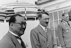 Aunque pertenecían a una raza evolutiva diferente a la de los alemanes, se consideraba que los japoneses tenían cualidades suficientemente superiores, al igual que las personas con sangre germano-nórdica, para justificar una alianza por parte de ideólogos nazis como Himmler, que poseía un gran interés y estaba influenciado también por, la antropología, las filosofías y las religiones panteístas del Este de Asia, mencionó cómo su amigo Hiroshi Ōshima, el embajador japonés en Alemania, quien creía que las castas nobles en Japón, los Daimyō y los Samurái, eran descendientes de dioses de origen celestial, lo cual era similar a la creencia del propio Himmler de que “la raza nórdica no evolucionó, sino que bajó directamente del cielo para asentarse en el continente atlántico ”.[42]