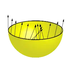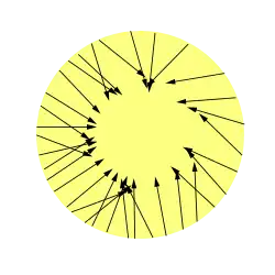 Si se tiene una aplicación sin punto fijo, entonces cada punto del disco permite definir un vector no nulo, el vector . Intuitivamente, la idea es «plegar» una esfera cortada por la mitad, y hacerla coincidir exactamente con el semi-disco.