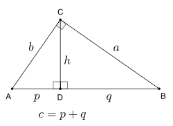 Si h denota la altura de un triángulo rectángulo perpendicular a la hipotenusa, y p y q los segmentos en los que divide a hipotenusa, entonces el teorema puede expresarse como: