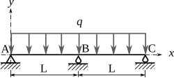 Viga continua de tres apoyos con carga continuaMomentos flectores para viga continua de tres apoyos con carga continua