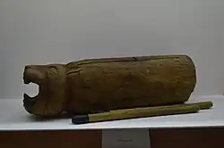 Este es un tipo de teponaztli hecho con caparazón de tortuga o ayotapalcatl.