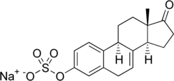 Los estrógenos equinos conjugados contienen moléculas de estrógeno conjugadas con grupos sustituyentes hidrofílicos (p. ej. sulfatos). Se obtienen a partir de la orina de yeguas preñadas y reciben el nombre de Premarina. El Prempro es un producto relacionado en el que se combina Premarina con una progestina sintética, acetato de medroxiprogesterona. Sin embargo, Premarina, y especialmente Prempro, se han asociado con serios riesgos para la salud.[17] En enero de 2003, la FDA requirió a Wyeth para que pusiera una advertencia en los envases de Prempro, que indicase: