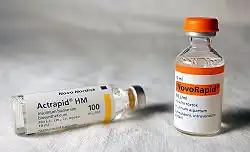 - ↑ por MedlinePlus (2007). «Insulina Lispro inyectable». Enciclopedia médica en español. Consultado el 6 de agosto de 2009.