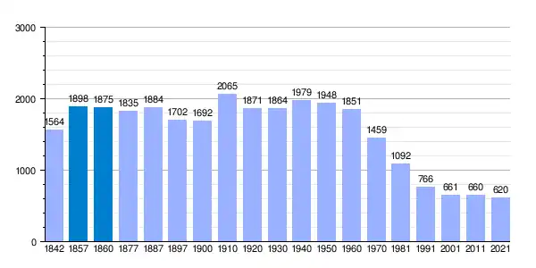 | Gráfica de evolución demográfica de Teresa de Cofrentes[2] entre 1842 y 2021 |
