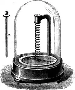 Para ello utilizó un alambre metálico plano compuesto de tres láminas (plata, oro y platino) soldadas entre sí, y arrollado en una espiral, con un extremo fijo y un extremo libre donde estaba ubicada la aguja indicadora sobre una escala graduada.