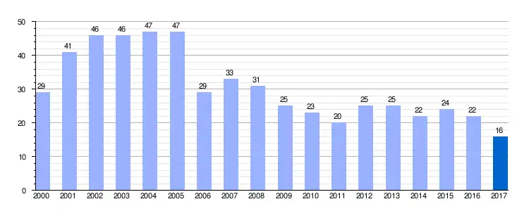 | Gráfica de evolución demográfica de Terminón entre 2000 y 2017 |
