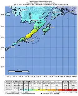 El terremoto de Alaska de 2021 fue un sismo que ocurrió frente a la costa de la península de Alaska a las 22:15 hora local del 28 de julio.[1] El terremoto tuvo una magnitud de momento (MW) de 8,2 según el Servicio Geológico de los Estados Unidos (USGS).[2][3] Una alerta de tsunami fue emitida por la Oficina Nacional de Administración Oceánica y Atmosférica (NOAA) pero luego se canceló.[4] Es el terremoto más grande en los Estados Unidos desde el terremoto de 1965 en las Islas Rat.[5][6]
