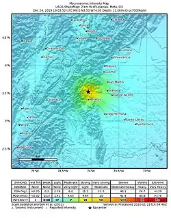 - ↑ Boletín preliminar 01 de réplicas del Sismo del 24 de diciembre de 2019