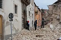 El terremoto de L'Aquila de 2009 fue un sismo de magnitud 6,3 en la escala sismológica de magnitud de momento según el Servicio Geológico de los Estados Unidos[3] registrado el día 6 de abril de 2009 en la zona central de la península itálica.[4] El epicentro se localizó en la ciudad de L'Aquila, región de Abruzo. El terremoto dejó 309 muertos, 1.500 heridos y unas 50 000 personas perdieron sus casas a causa de la destrucción total o parcial de miles de edificaciones.[5][6][7] Las réplicas continuaron los días posteriores del sismo más fuerte, entre ellos varios que superaron magnitud 5,0.