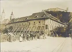- ↑ a b c d e f g h i j k l m n ñ Svenšek, Ana (14 de abril de 2015). «120 let od "nepopisno strašnega trenutka", ki je spremenil belo Ljubljano». RTV Slovenija (en esloveno). Consultado el 29 de agosto de 2023.