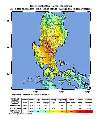 El terremoto de Luzón de 1990 fue un movimiento sísmico de magnitud 7,8 ML en la escala de Richter,[1] ocurrido en Luzón, la isla más grande de Filipinas, el 16 de julio de 1990,[2] a las 16:26 hora local, provocando 1.942 fallecidos y daños materiales en un área de 20 000 km².