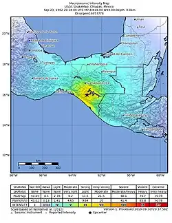 - ↑ «USGS 7.8 - Chiapas, Mexico 1902-09-23 20:18:00 (UTC)».