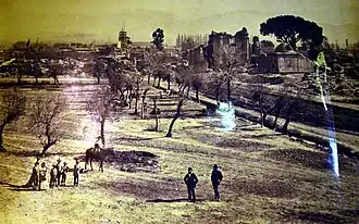 Ruinas en la Plaza Pedro del Castillo de la ciudad de Mendoza luego del terremoto de 1861. | ||