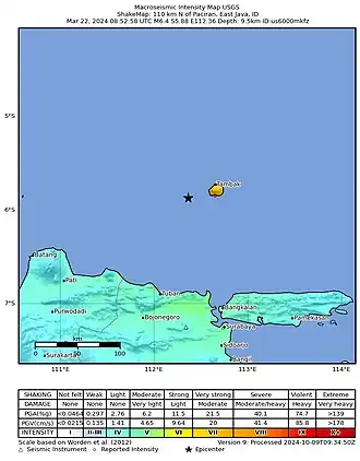 - ↑ «M 6.4 - 110 km N of Paciran, Indonesia». Servicio Geológico de Estados Unidos. Consultado el 22 de marzo de 2024.