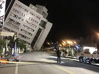 - ↑ Westcott, Ben; Sun, Yazhou; Liu, Kwang-Yin. «Dozens feared trapped in Taiwan after earthquake topples buildings». CNN. Consultado el 7 de febrero de 2018.