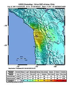 El terremoto de Tarapacá de 1987, también llamado terremoto de Arica de 1987, fue un sismo registrado el 8 de agosto de ese año a las 15:48 (UTC-4) (11:48 AM, hora local) con una magnitud de 7,2 grados en la escala de Richter.[1] Tuvo una intensidad máxima de VII a VIII en la escala de Mercalli.[2] Fue percibido entre Moquegua, Perú, y La Serena-Coquimbo, Chile.