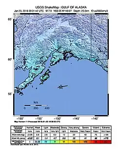 El terremoto del Golfo de Alaska de 2018 fue un sismo ocurrido a las 00:31 (AKST) el 23 de enero de 2018, que alcanzó una magnitud de 7.9 MW. Se produjo aproximadamente a 280 kilómetros (km) al sureste de Kodiak con a una profundidad de 25 km.[1]