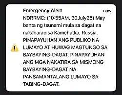 - ↑ Tsunami.gov. «Public Tsunami Message Number 4». Consultado el 30 de julio de 2025.