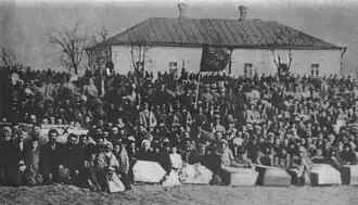 También combatieron a los aliados de la fuerza invasora: los terratenientes,[21] la Rada Central Ucraniana[22] y la Varta o «guardia nacional»,[23] que pretendían acabar con los logros conseguidos por las capas más bajas de la sociedad.[24] Tras la caída del zar Nicolás II, obreros y campesinos se enfrentaron al Gobierno Provisional Ruso, muchas veces manipulados por bolcheviques (que después no dudarían en reprimirlos al llegar al poder).[25] En el proceso, se apropiaron de industrias y tierras, expulsando a los propietarios y formando sus propios consejos o sóviets.[26] Destacó otra sublevación, en las villas de Zvenýhorod y Taraschanka, en la gobernación de Kiev, liderada por atamanes de tendencias políticas anarquistas, que consiguieron movilizar 30.000 a 40.000 campesinos con 200 ametralladoras y 2 baterías de artillería. A comienzos de agosto, los bolcheviques se hicieron con el control del levantamiento, lo que llevó a la pérdida del apoyo popular y su colapso, aunque ya había cobrado la vida de 6.000 soldados alemanes.[27] Revueltas como aquella costaron la vida de 19.000 germanos entre abril y junio. Se caracterizaban por estar desconectadas entre sí, carecer de programa político y sólo compartir la defensa de las tierras conseguidas.[28]