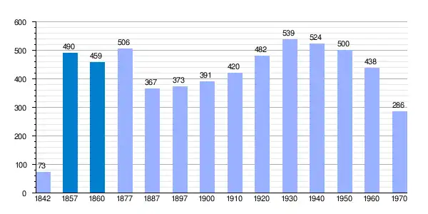 Población de derecho según los censos de población del INE Población de hecho según los censos de población del INEEntre el censo de 1857 y el anterior, crece el término del municipio porque incorpora a 495124 (San Martín del Terroso) |