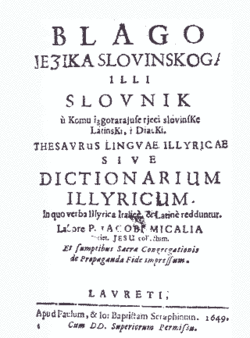 - Thesaurus Lingvae Illyricae (Loreto, 1649 ; Ancona, 1651) Giacomo Micaglia S.J.