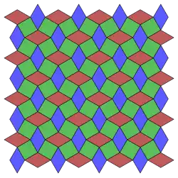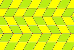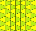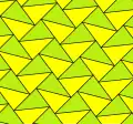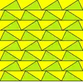 Los mosaicos isoédricos tienen caras idénticas (face-transitivity) y vertex-transitivity, hay 18 variaciones, con 6 identificadas como triángulos que no se conectan de borde a borde, o como cuadrilátero con dos bordes colineales. La simetría dada asume que todas las caras son del mismo color.[1]