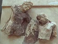 - ↑ La Coste-Messelière, Pierre de (1923). «Observations sur les sculptures du Trésor des Athéniens». Bulletin de correspondance hellénique (en francés) 47 (1): 387-419. doi:10.3406/bch.1923.3019.