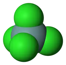 Tetracloruro de carbono Tetracloruro de silicio Cloruro de estaño (IV) Cloruro de plomo (IV) | |
