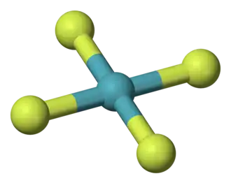 El tetrafluoruro de xenón es un compuesto químico con fórmula química XeF4. Fue el primer compuesto binario descubierto de un gas noble.[4] Se produce por la reacción química del xenón con flúor, F2, de acuerdo con la ecuación química:[5][6]