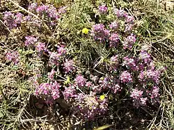Matorrales, tomillares, pinares y encinares, pastos, eriales pedregosos y bordes de camino, en substrato calizo, margoso o yesoso, o en gravas; crece entre 200 y 1500 m de altitud. Florece de marzo a julio.[2]