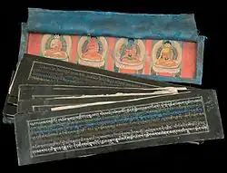 Estos textos religiosos fueron escritos en muchos idiomas y escrituras diferentes, y la memorización, recitación y copia de ellos fueron de gran valor religioso para los budistas. Incluso después del desarrollo de la impresión, los budistas prefirieron mantener sus prácticas originales con estos textos.[2]