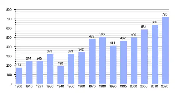 Población de los censos y conteos del Instituto Nacional de Estadística y Geografía (INEGI).[8] |
