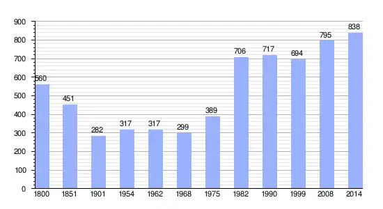 | Gráfica de evolución demográfica de Thénouville entre 1800 y 2014 |