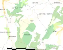 - Situación de Thésy en un mapa de Francia y de comunas limítrofes (enlace roto disponible en Internet Archive; véase el historial, la primera versión y la última). (en francés)